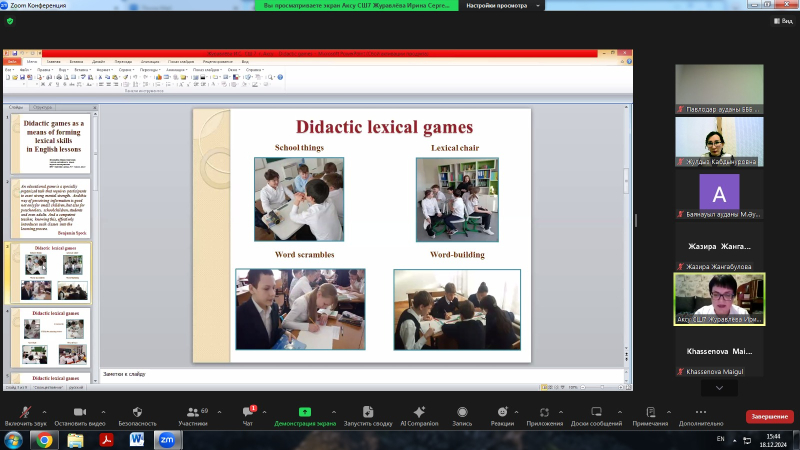 Семинардың мақсаты: мұғалімдерге ағылшын тілінің грамматикасы мен лексикасын үйрету үшін ойын элементтерін қалай тиімді пайдалану керектігін көрсету болды. Семинар барысында мұғалімдер оқушылардың ынтасын арттыру, оқу процесіне қатысуын жақсарту және тілдік білімдерін бекіту үшін геймификацияны қолдануды үйренді.