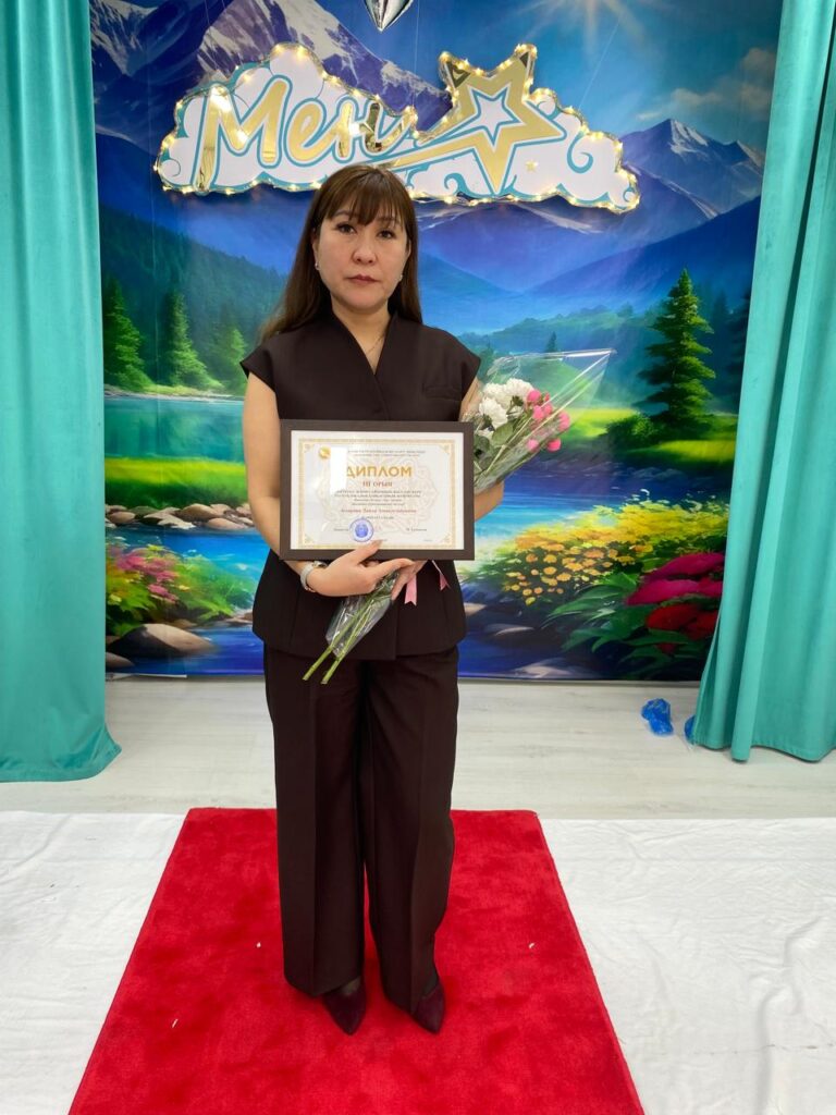 Продемонстрировав высокий уровень подготовки, Ляйля Амангельдиевна 13–14 ноября приняла участие в республиканском этапе, проходившем в городе Астана, и успешно защитила свою работу. Благодаря своему творческому подходу и богатому опыту она заняла почётное III место по итогам конкурса.