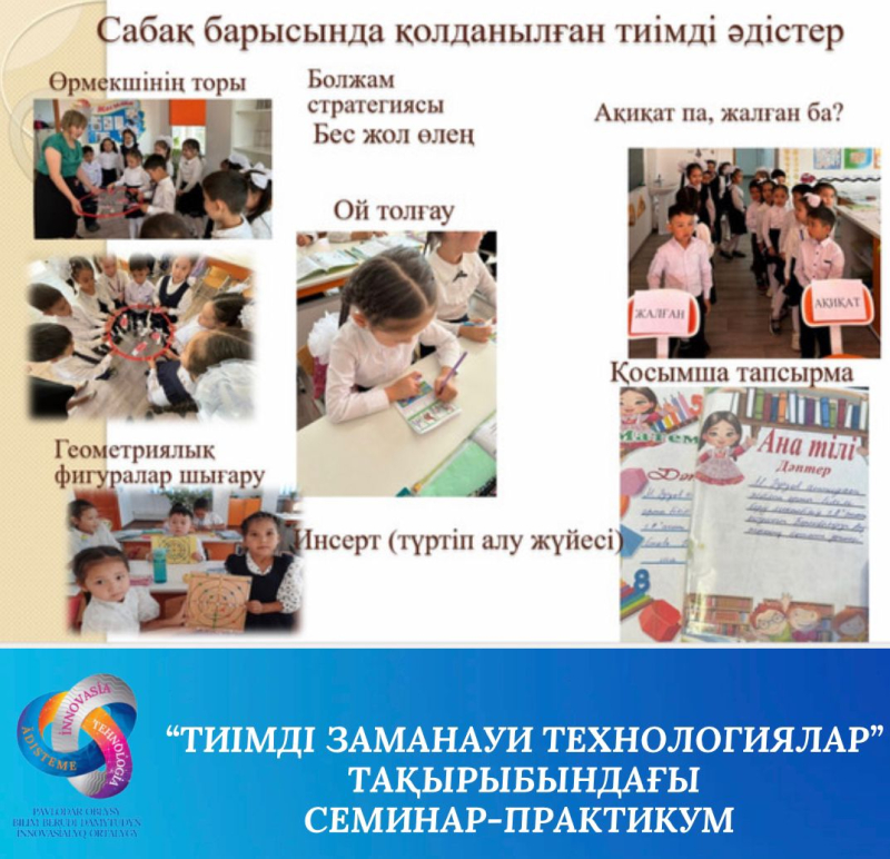 Спикеры педагоги-мастера, тренеры, учителя-практики,  обладатели звания «Үздік педагог» представили самые эффективные, современные педагогическите технологии: «Методика Перевёрнутый класс», «Приемы преподавания истории в совмещённых классах в малокомплектных школах», «Применение Сингапурского метода обучения для развития критического мышления»,«Развитие функциональной грамотности у обучающихся старших классов на уроках биологии на основе модели обучения «Перевернутый класс»,